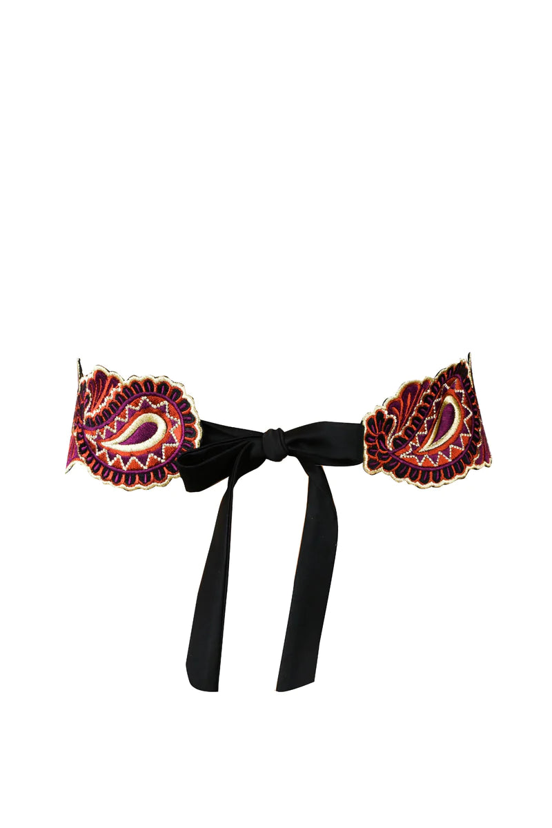 A fresh new take on our best selling belts, this piece features bold and intricate paisley embroidery, perfect for dressing up a simple outfit and accentuating your waistline.